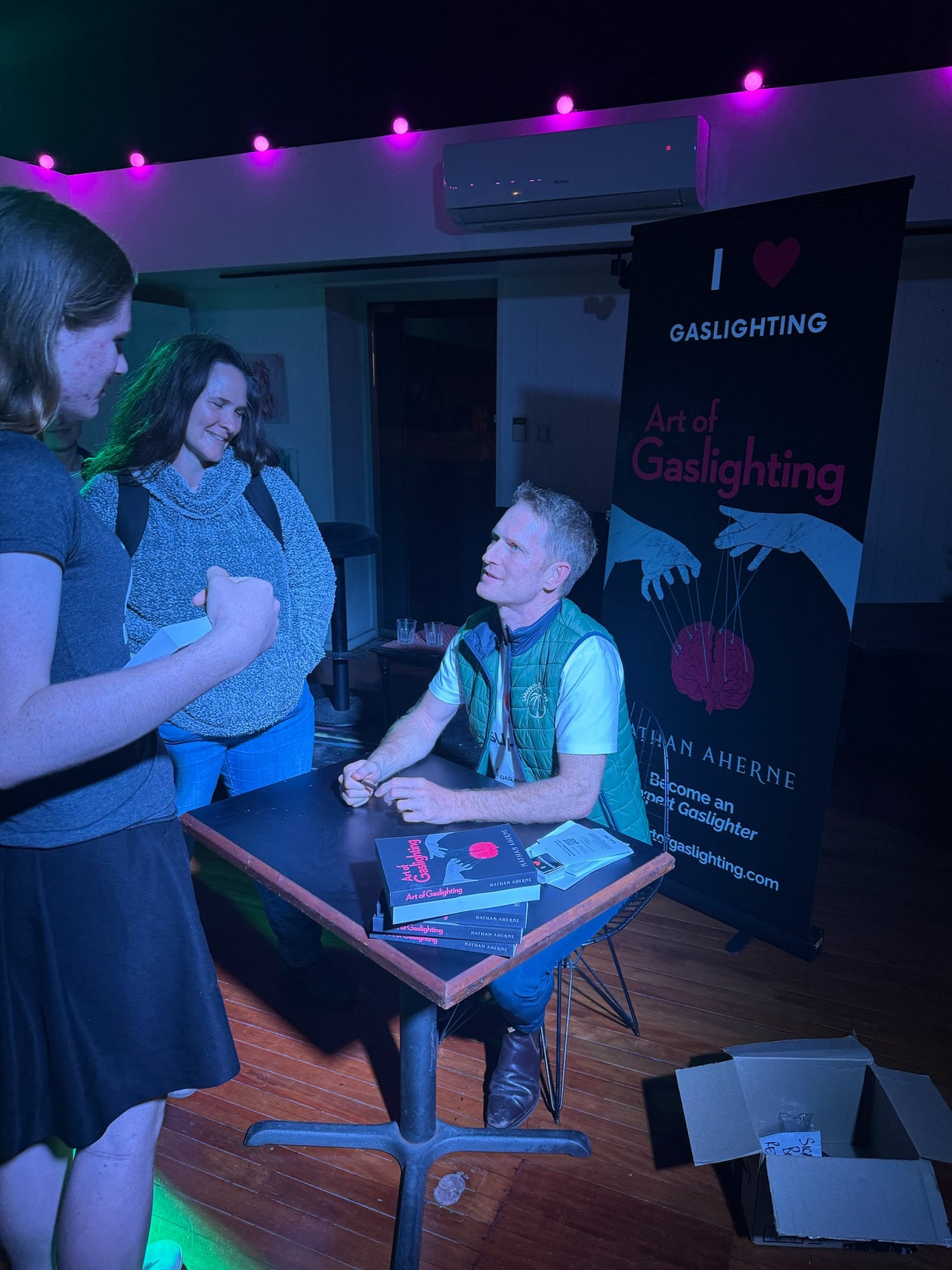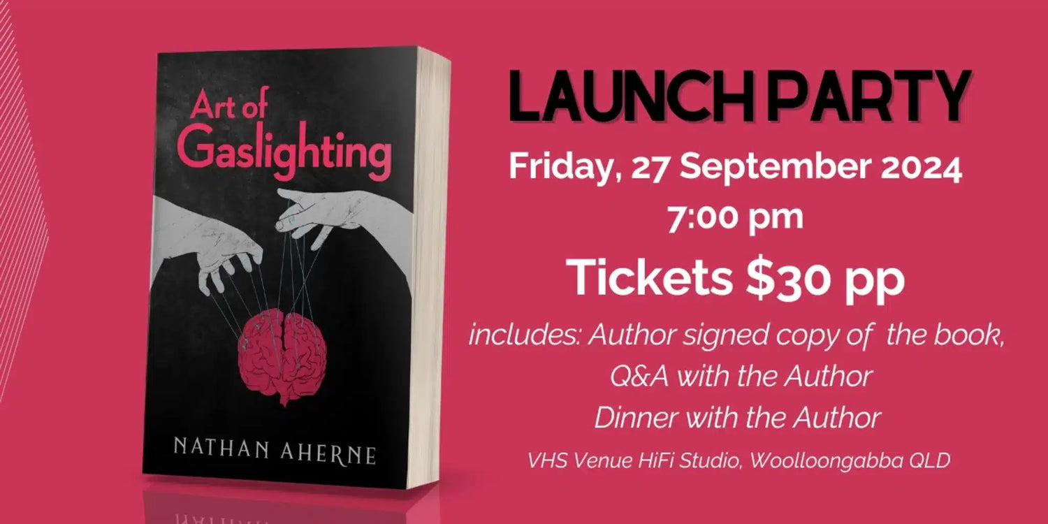 Come and be a part of the Art of Gaslighting launch party on the 27th of September 2024. Tickets are $30 Australian dollars and that includes a signed book and light dinner. You will get to meet Nathan, ask him questions and hang out with everyone else who comes. The event is in Brisbane Australia